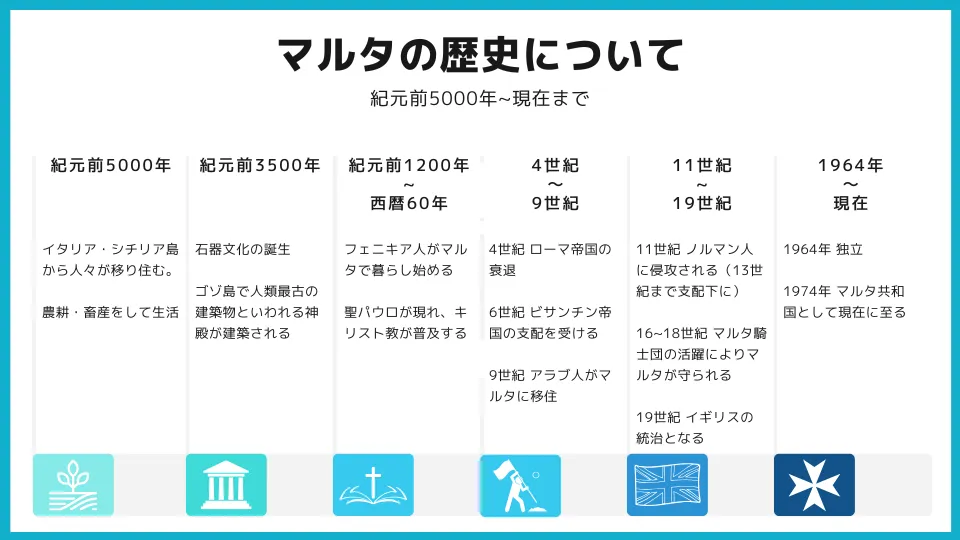 マルタの歴史は非常に古く、紀元前5000年にまで遡ります。