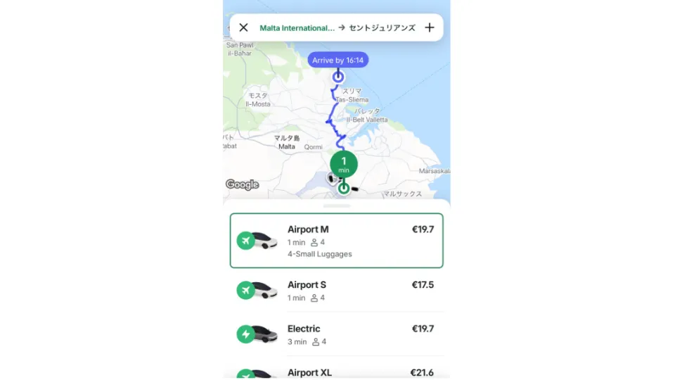 - ・マルタ最大手のタクシー会社が運営している、マルタ独自のアプリ